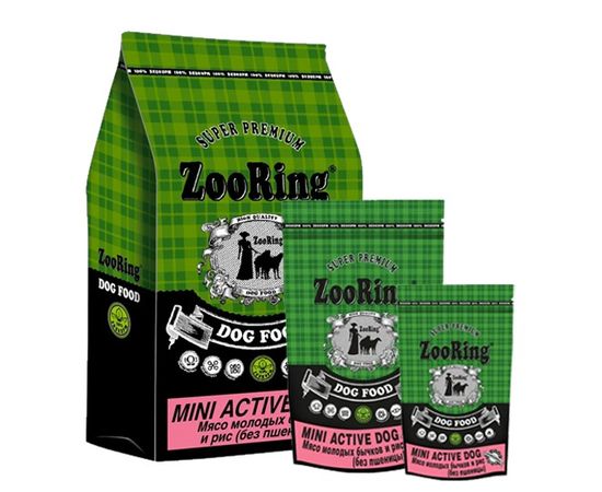 Корм ZooRing MINI ACTIVE DOG для собак, мясо молодых бычков и рис, 2 кг