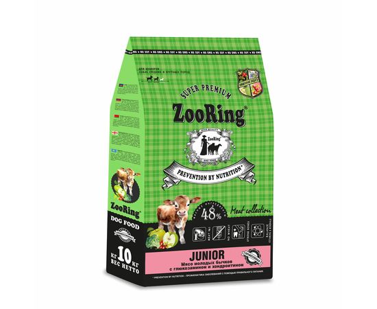 ZooRing JUNIOR для юниоров средних и крупных пород с 6-7 месяцев Мясо молодых бычков и рис 10 кг