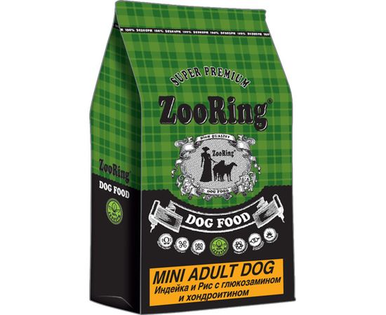 Корм ZooRing MINI ADULT DOG для собак, индейка и рис с глюкозамином и хондроитином, 700гр