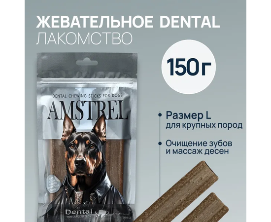Amstrel Dental жевательное лакомство для собак крупных пород, размер L - 150 г