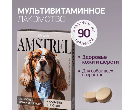 Amstrel мультивитаминное лакомство для собак "Здоровье кожи и шерсти" с кальцием и биотином - 90 таблеток