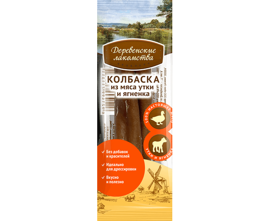 Деревенские лакомства Мини колбаски из мяса утки и ягненка для собак 8 гр-1шт