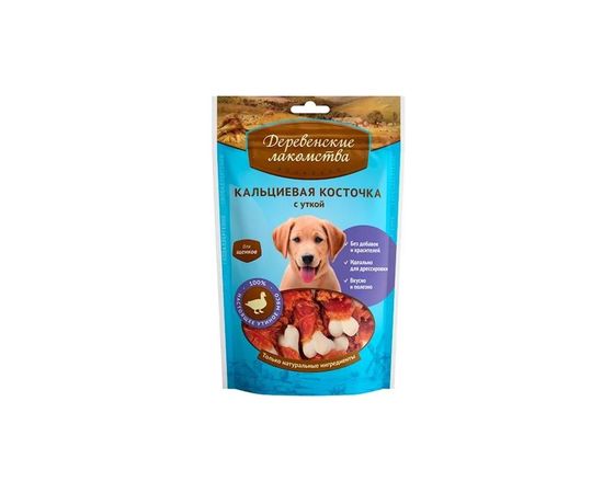 Деревенские лаком.100% Мяса Кальциевая косточка с уткой д/щенков 90гр