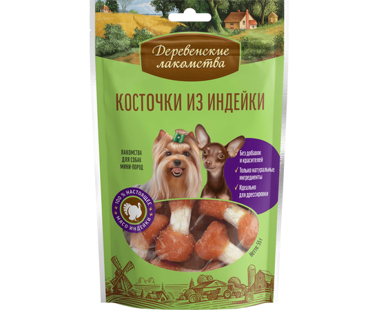 Деревенские лаком.д/мини-пород Косточки из индейки 55гр. , 544155