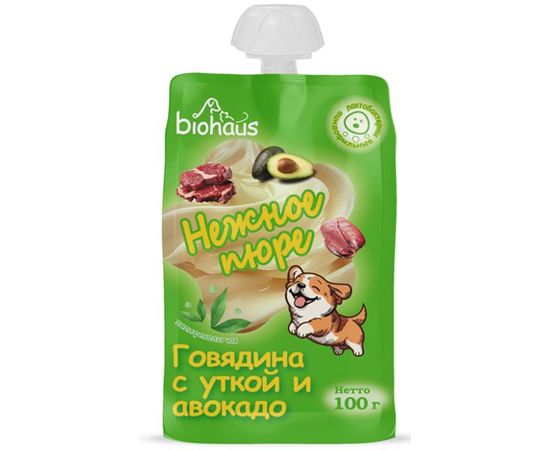 Лакомство для собак BIOHAUS Пюре Говядина с уткой и авокадо 100гр
