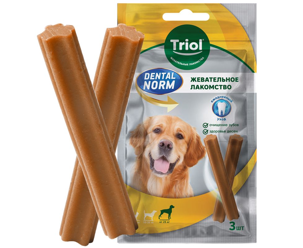Лакомство для собак DENTAL NORM - это простой и эффективный уход за полостью рта. Зубной камень у собак - распространенное явление, особенно у животных старше трех лет. Поэтому важно знать, как избавиться и предотвратить его появление. Ежедневное употребление лакомств DENTAL NORM от TRIOL помогает снизить риск заболеваний полости рта, качественно очистить зубы, уменьшить налет и освежить дыхание.