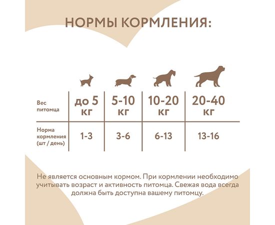 Для собак разного веса предусмотрены различные нормы потребления: от 1 фроста в день для собак весом <5кг до >5 фростов в день для собак весом более 25 кг.