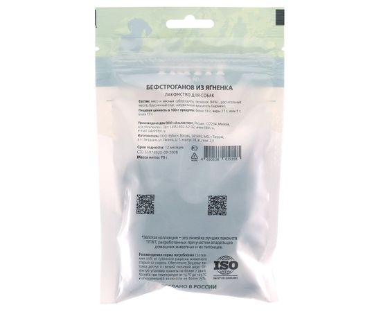 ЛАКОМСТВО "TITBIT" БЕФСТРОГАНОВ ИЗ ЯГНЕНКА Д/СОБАК ЗОЛОТАЯ КОЛЛЕКЦИЯ 75г 019191,580470