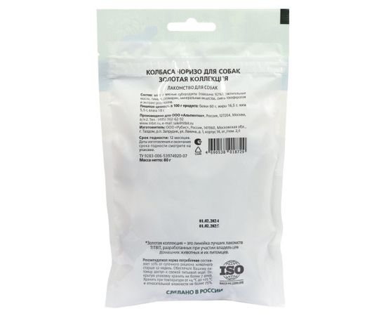 ЛАКОМСТВО "TITBIT" КОЛБАСА ЧОРИЗО Д/СОБАК ЗОЛОТАЯ КОЛЛЕКЦИЯ 80г 018729