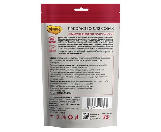Мнямс Деликатес "Мраморные джерки по-испански" для собак 75 г