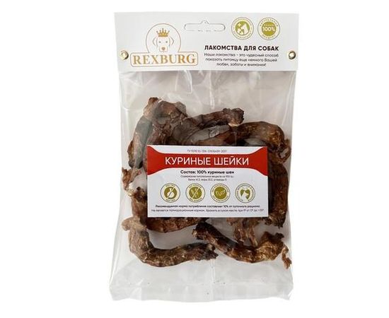 Упаковка: 10 штСостав: 100% куриные шеи.Белки 41,2; Жиры 33,2; Углеводы 0.