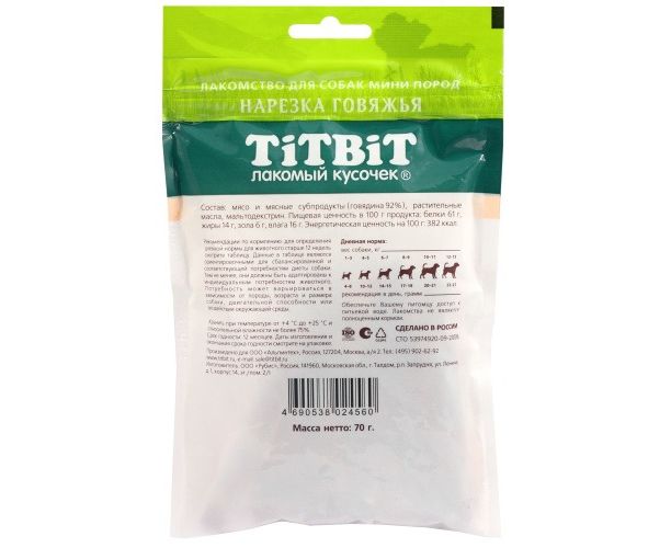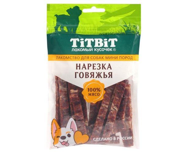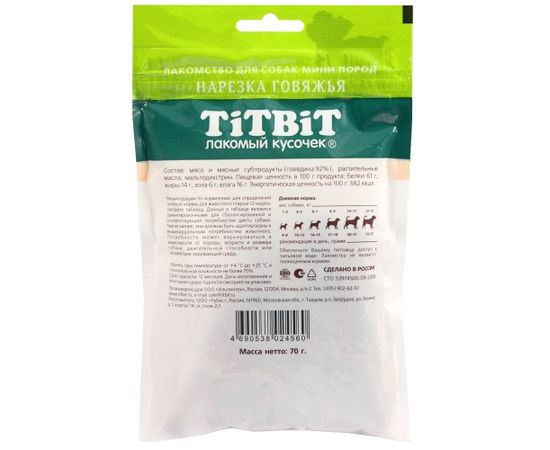 Тит Бит 0,07кг нарезка говяжья лакомство для собак мини пород, 3815