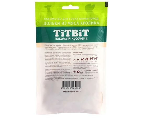 Тит Бит 0,1кг Лакомый кусочек дольки из мяса кролика для собак мини пород, 003666
