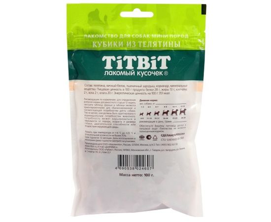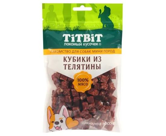 Тит Бит 0,1кг Лакомый кусочек кубики из телятины для собак мини пород,003665