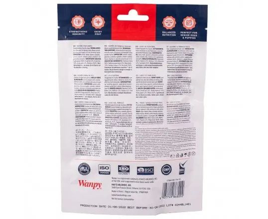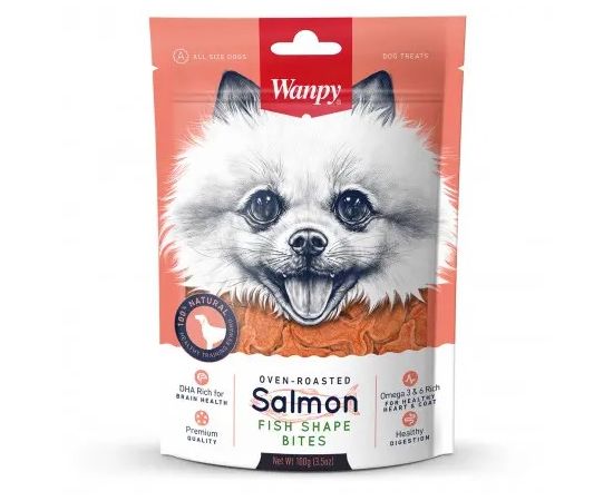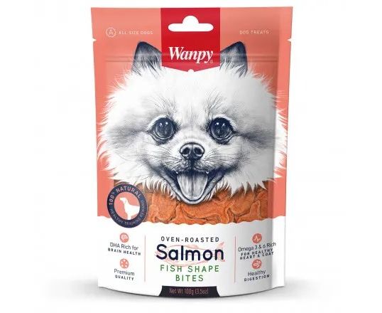 Wanpy Dog лакомые кусочки из нежного лосося в форме рыбок 100 г, FA-32