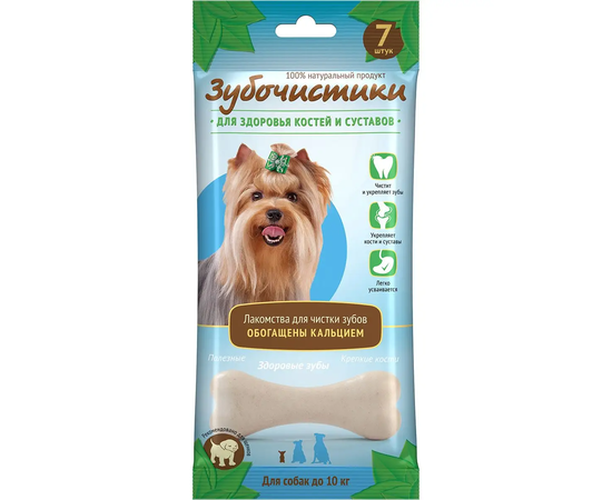 Кальциевые зубочистики для здоровья костей и суставов для собак мелких пород весом до 10 кг. Зубочистики - лучшие лакомства для чистки зубов, отлично снимают зубной налет, отбеливают зубы, предотвращают появление зубного камня и борются с болезнями десен. Запантетованная структура лакомства позволяет сделать чистку максимально эффективной, сопоставимой с механической. Зубочистики с кальцием укрепляют кости и зубы, поддерживают здоровье сердечно-сосудистой системы, являются незаменимым угощением для щенков всех пород в период активного роста. 100 % натуральный продукт. Количество в упаковке: 7 шт. Длина 1 шт: 5 см. Вес 1 шт: 8,5 гр.