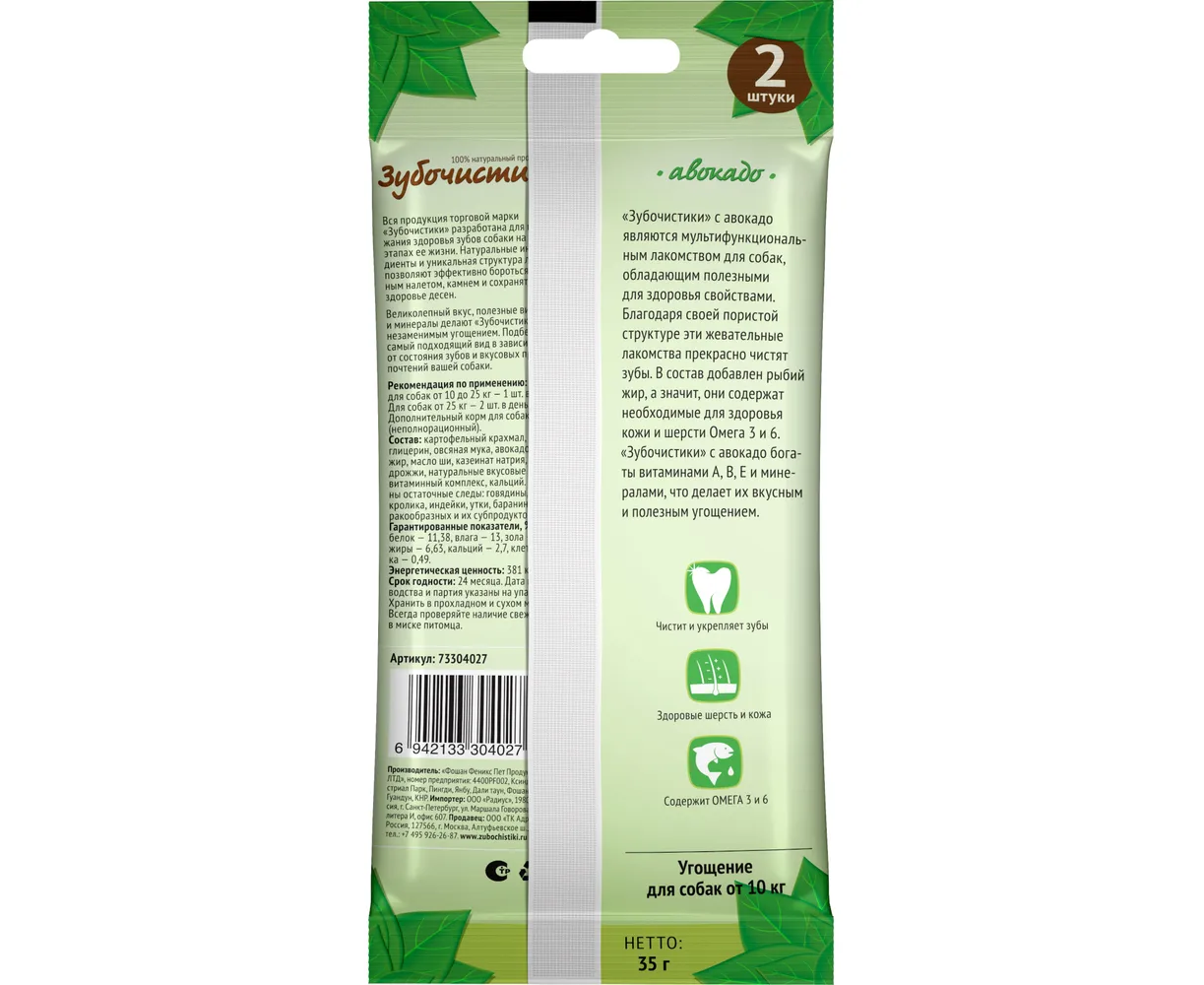 Зубочистики лакомство с Авокадо для собак средних пород 35 гр