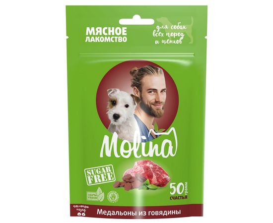 Molina Лакомство для собак всех пород и щенков, Медальоны из говядины, 50 г, 5815