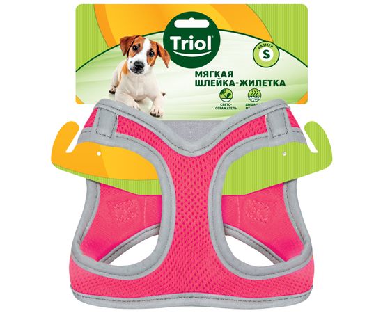 Мягкая и удобная шлейка-жилетка - функциональный аксессуар для четвероногих модников. Шлейка выполнена из высококачественного нейлона и имеет дышащую сетчатую поверхность, которая бережно прилегает к телу животного и хорошо пропускает воздух. Шлейка крепится при помощи широкой липучки и удобной пластиковой застежки на спине питомца. Для максимального комфорта на груди предусмотрена эластичная вставка. Яркий малиновый цвет и окантовка из светоотражающего материала делают питомца заметным не только в пасмурную погоду, но и в ночное время. Размер шлейки: S (обхват груди 360-410мм). Цвет: малиновый.