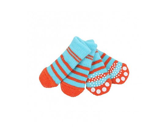 PUPPIA Носки для собак Nitty-Gritty, голубые с красными полосками, S, PAND-SO1176-AQ-S