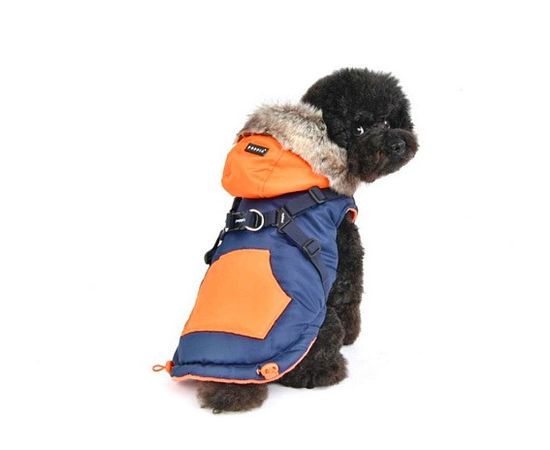 PUPPIA Жилет для собак утепленный с капюшоном и шлейкой "Orson", синий, M, 27см (Южная Корея), PARD-,PARD-VT1569-NY-M