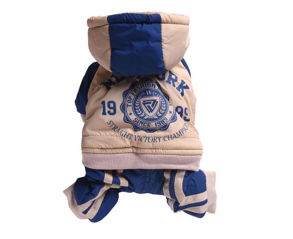 Уют Комбинезон c капюшоном, сине-бежевый, надпись "New York", размер S, длина 24