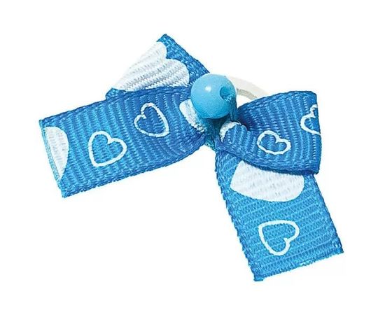 Бантик (пара) голубой с бел. сердечками + бусинка 2-22-020, 2-22-020