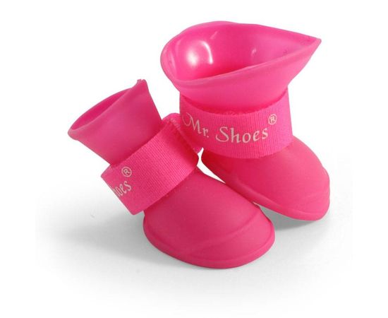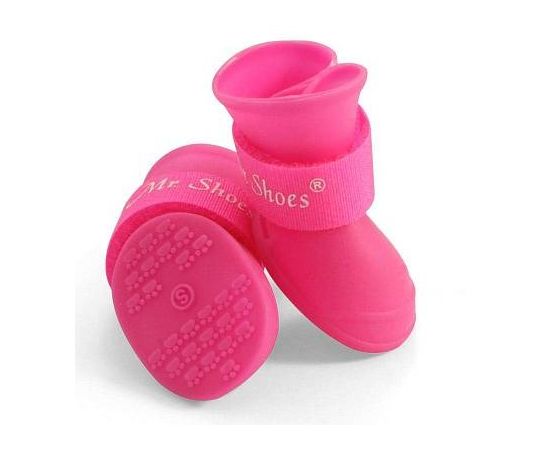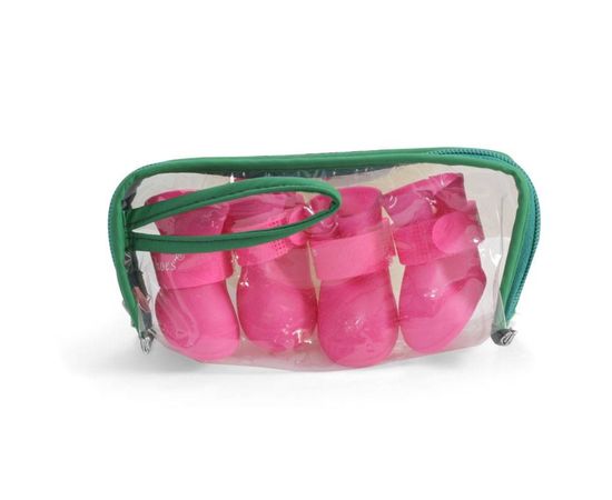 Стильный комплект резиновых сапожек для собак - незаменимый аксессуар индивидуальной защиты лап животного от воздействия агрессивных жидкостей, дорожных химреагентов, бензинов и масел на проезжей части дорог. Прочные, комфортные и непромокаемые, они сохраняют лапы собаки чистыми и сухими в ненастную погоду и защищают их от истирания о твердое покрытие при длительных и интенсивных нагрузках. Размер изделия: 55х45х55 мм. Цвет: розовый.