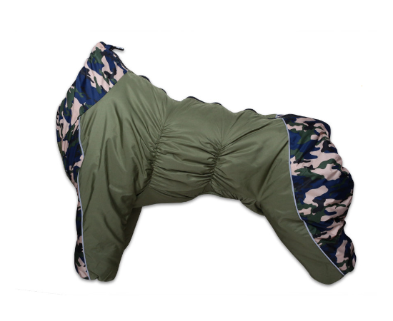 Главная/Товары для собак/Одежда и обувь/Зимний комбинезон на мальчика цвет оливковый размер XXL (спинка 81см, шея 56-80, грудь 72-102см), KL,KLM-302/XXL