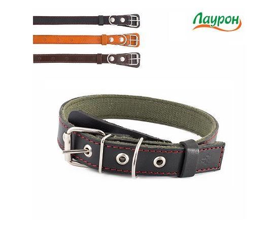 Ошейник (Лаурон) 25мм, 40-52 см 2 слоя кожа+брезент неукрашенный