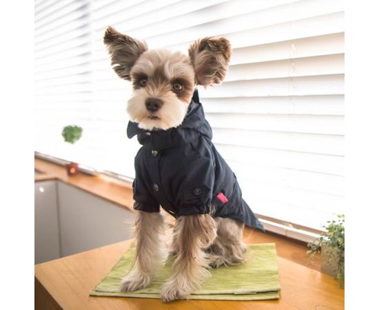 Украшением служит пояс с декоративной пряжкой. Внутри подкладка бежевого цвета. Застегивается на кнопках на груди. Согреет и защитит от дождя Вашего любимца ранней весной и дождливой осенью.