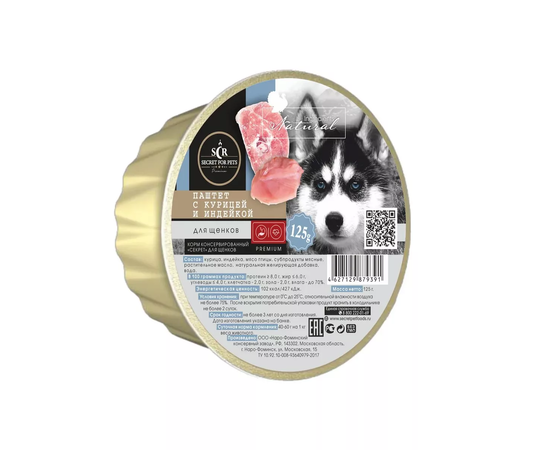 Секрет (Secret) Premium паштет с курицей и индейкой консервы для щенков (ламистер) 125гр