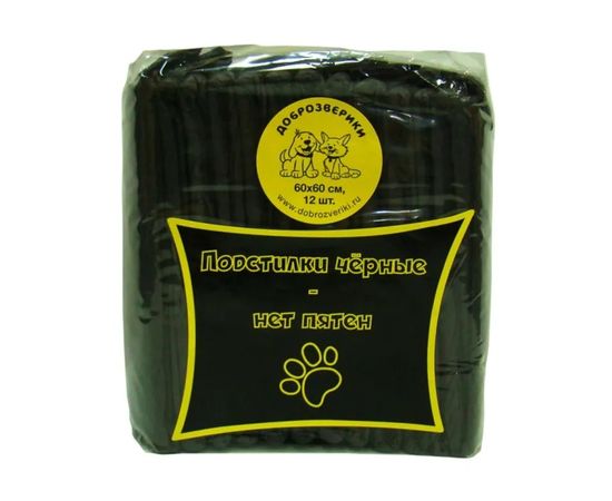 Доброзверики подстилки для животных суперабсорбентом 60*60 см (12 штук) "черные" ,567921