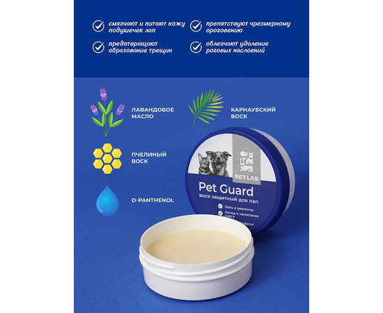 Компоненты входящие в состав воска для лап эффективно ухаживают за кожей лап домашних питомцев: