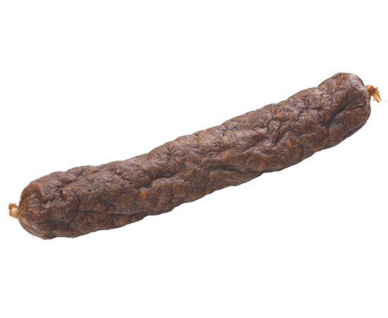 Колбаски для собак Шпикачка. Изготовлены из говяжьего мяса и мясных субпродуктов по колбасной технологии с добавлением таких полезных компонентов, как кукуруза, курага и говяжий рубец. Натуральный продукт, который не содержит красителей и консервантов.