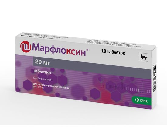 Марбофлоксацин – действующее вещество Марфлоксина® таблеток, активен в отношении грамположительных и грамотрицательных микроорганизмов, в т.ч. Escherichia coli, Salmonella typhimurium, Citrobacter freundii, Enterobacter cloacae, Serratia marcescens, Morganella morganii, Proteus spp, Klebsiella spp, Shigella spp, Pasteurella spp, Haemophilus spp, Moraxella spp, Pseudomonas spp, Brucella canis, Staphylococci, Streptococci, а также Mycoplasma spp..