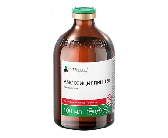 Назначают крупному рогатому скоту, овцам, козам, свиньям, собакам и кошкам для лечения бактериальных инфекций желудочно-кишечного тракта (включая энтерит, гастроэнтерит, гастроэнтероколит), респираторных заболеваний (включая бронхит, бронхопневмонию, ринит), хирургических болезней (включая раны, абсцессы, воспаления суставов), заболеваний мочеполовой системы (метрит, эндометрит, цистит, уретрит, пиелонефрит), болезней кожи и мягких тканей (включая пупочные инфекции), а также осложнений, вызванных микроорганизмами, чувствительными к амоксициллину. Для лечения лептоспироза, мастита, агалактии у свиней, актиномикоза, рожи свиней, парагриппа и паратифа. ПРОТИВОПОКАЗАНИЯ Повышенная чувствительность к амоксициллину и другим пенициллинам. Запрещается вводить внутривенно. Не разрешается применять кроликам, хомякам, морским свинкам и песчанкам. Амоксициллин нельзя смешивать с другими лекарственными препаратами в одном шприце, а также нельзя использовать одновременно с бактериостатическими химиотерапевтическими средствами. Препарат не следует назначать при инфекциях, вызываемых бактериями, образующими пенициллиназу.