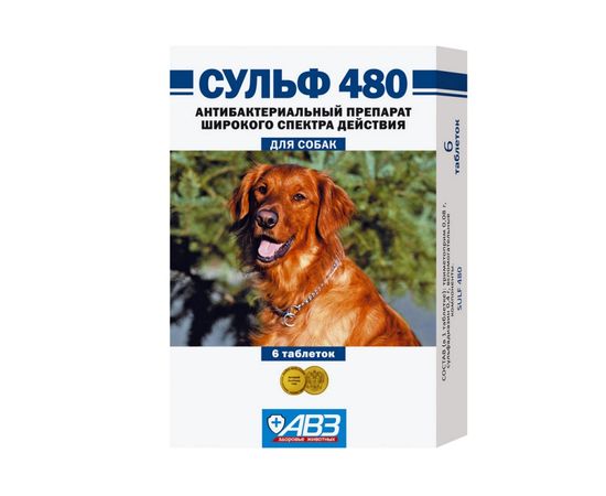 Выпускаются "Сульф 480 для собак" в блистерах по 6 таблеток. Внешняя упаковка – картонная коробка.