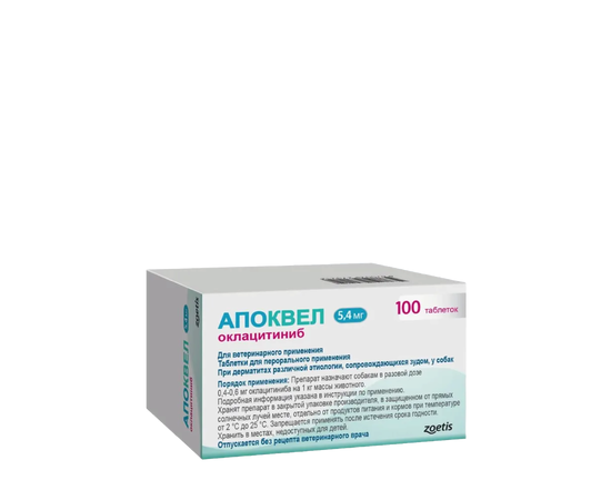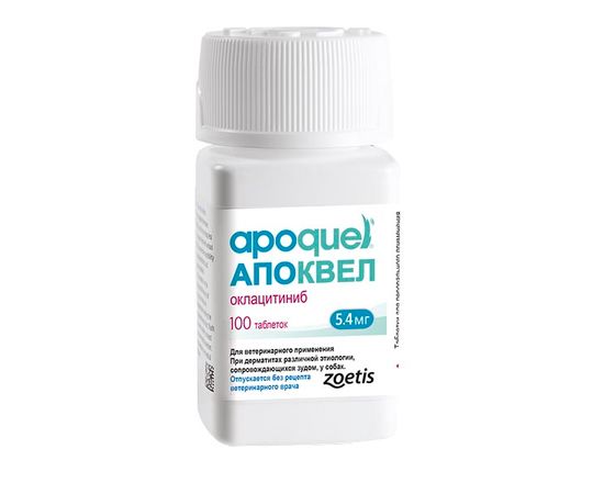 Апоквел применяют собакам перорально индивидуально с руки или в смеси с кормом, либо вводят принудительно в пасть в разовой дозе 0.4-0.6 мг оклацитиниба на 1 кг массы животного 2 раза/сут, не более 14 суток.