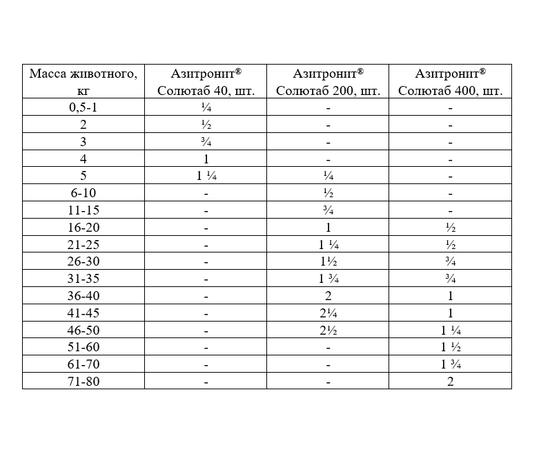 Азитронит® Солютаб 40 – животным массой тела до 5 кг,
