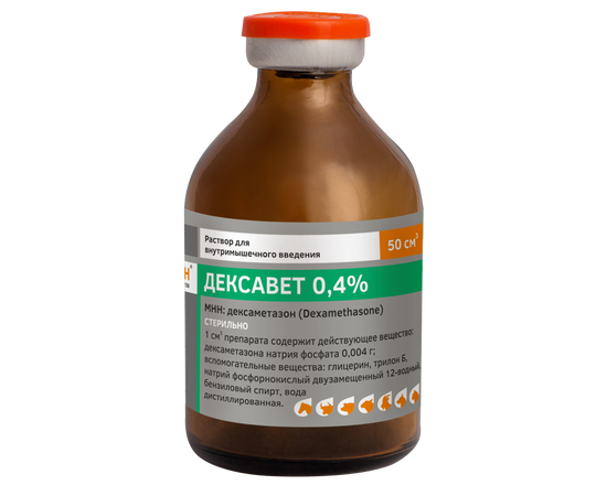 Максимальная концентрация дексаметазона в крови обнаруживается через 60 минут. Терапевтическая концентрация в сыворотке крови сохраняется в течение 30-96 часов в зависимости от вида животного. Биодоступность при внутримышечном введении составляет 100%. Биотрансформация происходит в печени и частично в фибробластах, участвующих в процессе метаболизма. Метаболиты, в основном, выводятся через печень и почки.