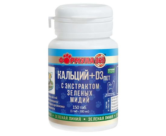 Формула 365, КАЛЬЦИЙ+Д3 ПЕТ с экстрактом зеленых мидий (150 табл), 4246495