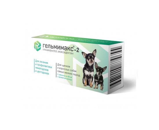 Препарат Гельмимакс-2 для щенков и взрослых собак мелких пород против гельминтов, 2*60 мг