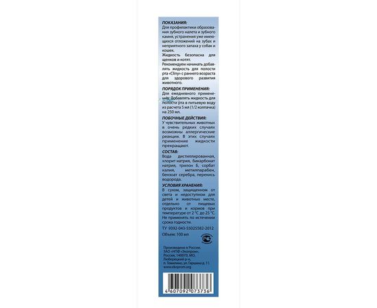 Для профилактики образования зубного налета и зубного камня, устранения уже имеющихся отложений на зубах и неприятного запаха у собак и кошек. Жидкость не влияет на микрофлору желудочно-кишечного тракта. Рекомендуем начинать добавлять жидкость для полости рта "Cliny" с раннего возраста для здорового развития животного. Жидкость безопасна для щенков и котят.