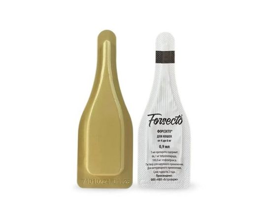 Противопоказания: противопоказанием для применения является повышенная индивидуальная чувствительность животного к компонентам препарата (в том числе в анамнезе). Запрещается применение лекарственного препарата FORSECTO больным инфекционными болезнями и ослабленным животным.