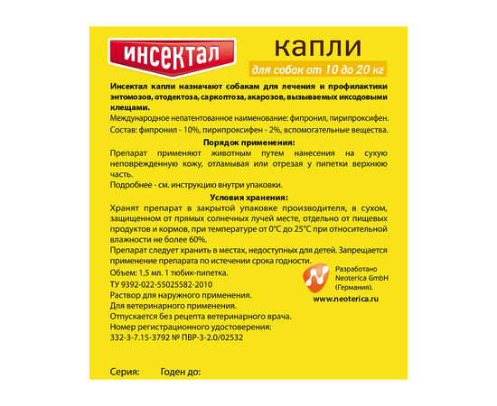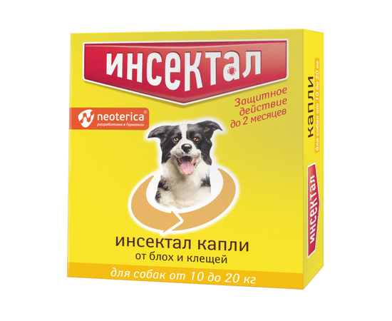 Используйте ежемесячно капли на холку Инсектал собакам: