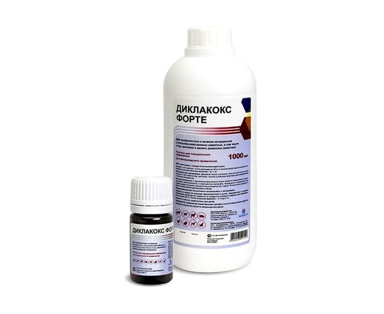 Лекарственная форма: раствор для перорального применения. В 1 мл Диклакокса Форте в качестве действующих веществ содержится 2,5 мг диклазурила, 40 мг поливинилпирролидона низкомолекулярного и вспомогательные вещества: полипропиленгликоль, полиэтиленгликоль – до 1 мл.