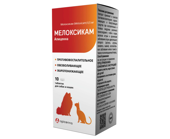 Мелоксикам 0,5 мг — противовоспалительное и обезболивающее для кошек и собак,10 таблеток