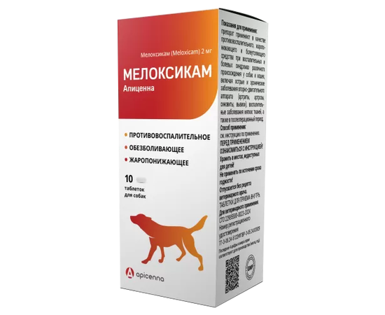 Мелоксикам Апиценна, 2 мг — противовоспалительное и обезболивающее для собак, 10 таблеток