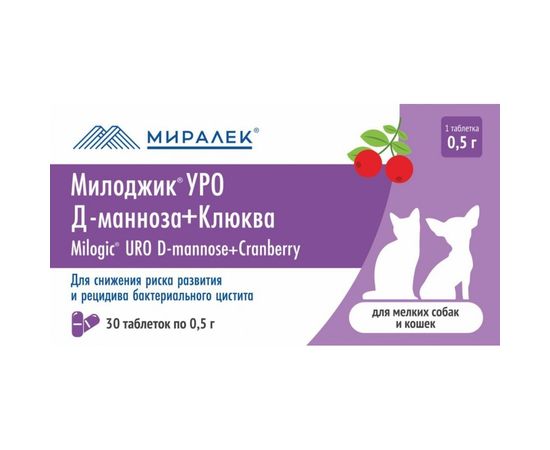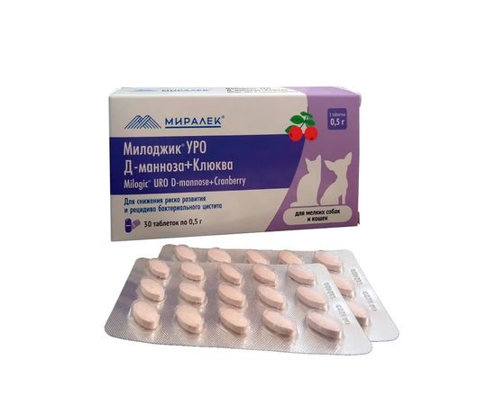 МИЛОДЖИК УРО Д-манноза+клюква 0,5 гр (для мелких собак и кошек), 30 табл
